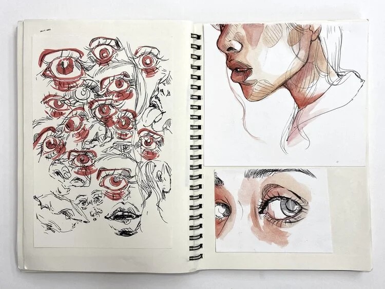 At the beginning of my GCSE and A Level courses I present my students with a visual diary. A little book for big ideas - one to become attached to. There is no expected way to fill this out, so long as it is. Students use their visual diaries as a means of recording thoughts, ideas, experiments, drawings and research. Wherever possible, I encourage my students to use a wall space at home for displaying their work in progress. Their walls should be full, and constantly changing in order to demonstrate their developing ideas. Displaying work in progress which can be seen by friends and family takes courage, but it reaps its rewards. By learning to do this, the students learn to critique, analyse and share their ideas. Regular critique either in small group classes or individually with me allows the opportunity to both ask and answer questions, explain their ideas and develop presentation skills.
